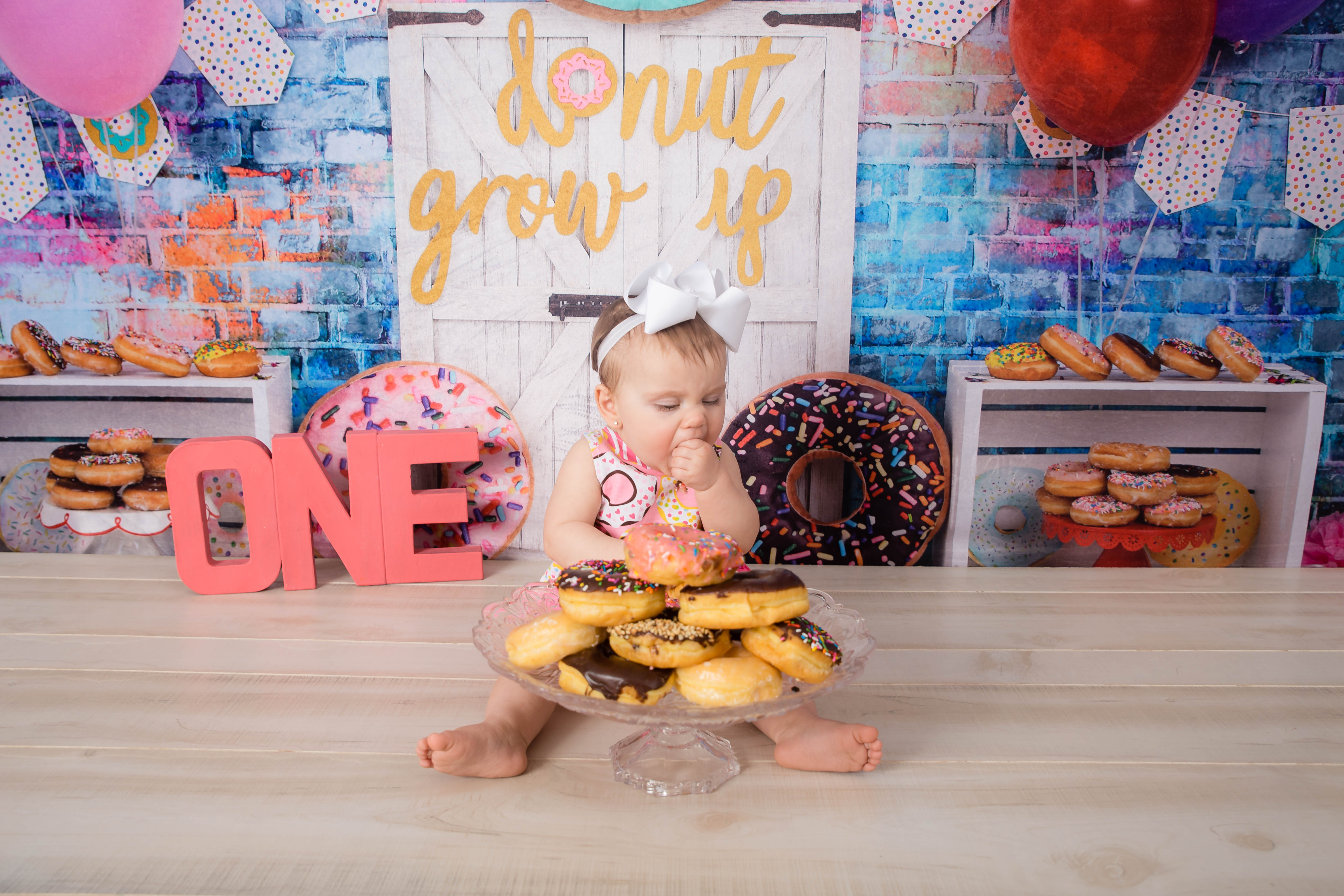 I mean does it get any cuter…or tastier?! I love giving a good variety to my cake smash sessions, including even switching up the food choices! Donuts are the best and the babies love them!